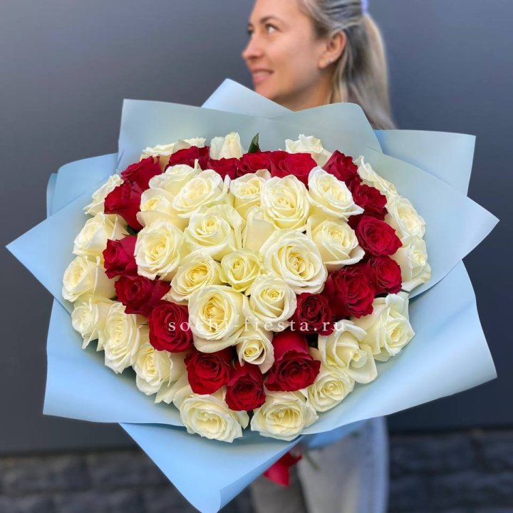 51 белых и розовых роз
