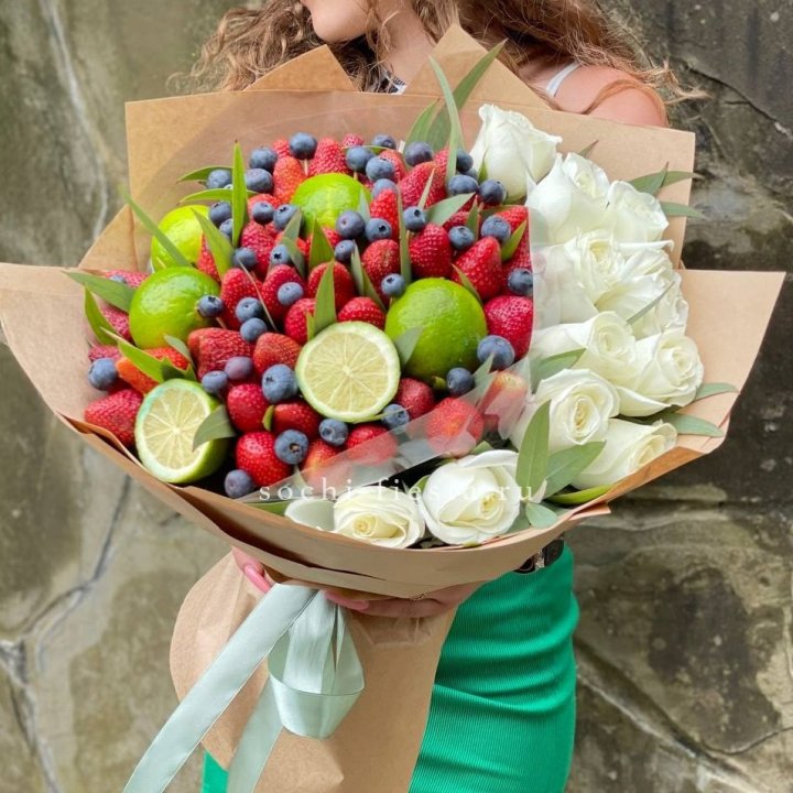 Ягодно-цитрусовый букет с розами