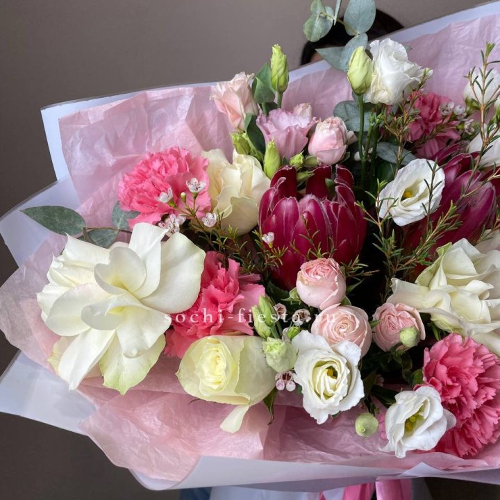 Букет с протеей, розами "Элеонора"