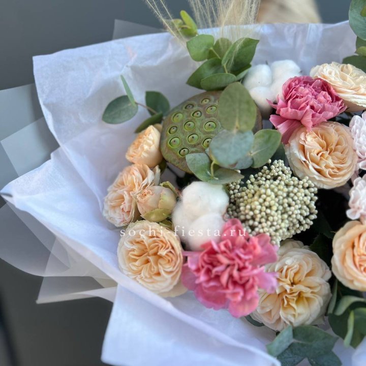 Букет с протеей, розами "Элеонора"