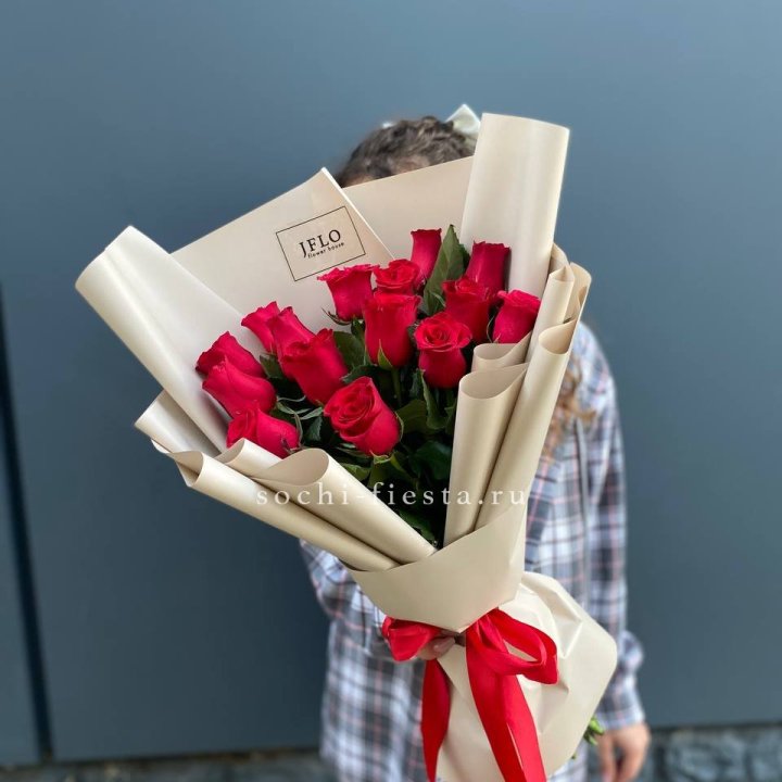 15 красных роз под ленту