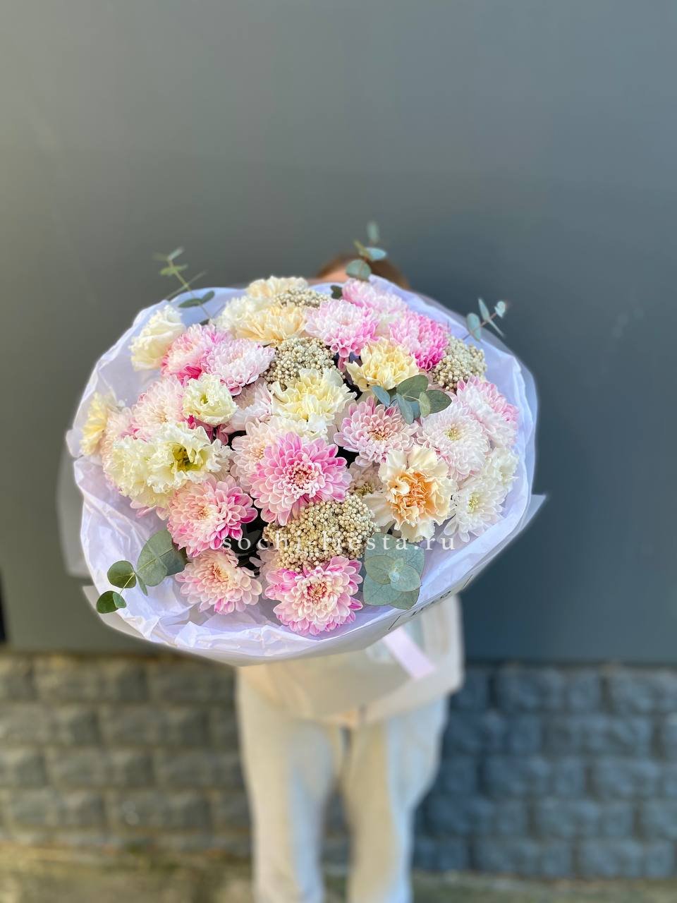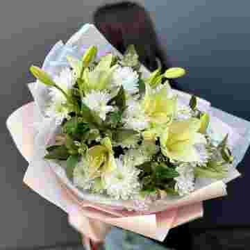 Букеты из эустом, альстромерий, диантусов, хризантем в Ростове-на-ДонуСреднее время сборки: 35-45 минут