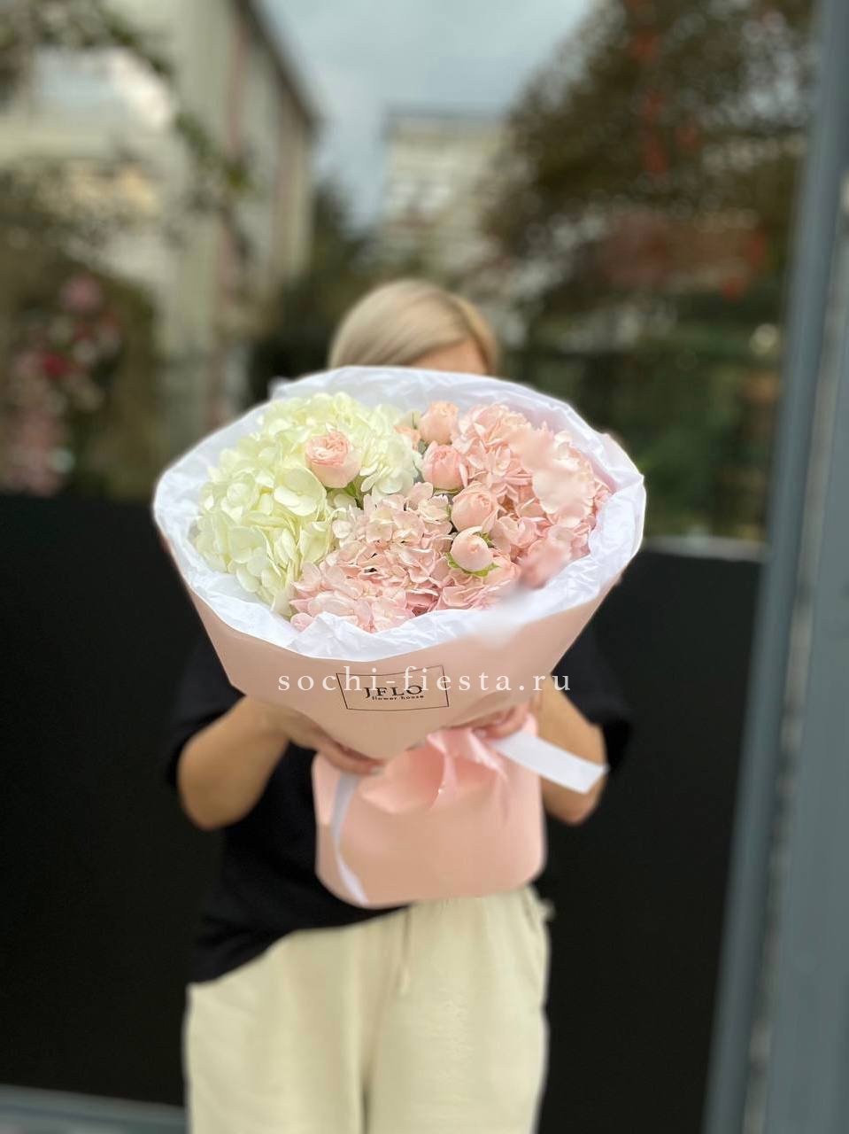Состав: вывернутые розы Венди - 17 шт., цилиндр D20, эвкалипт, лента, упаковка