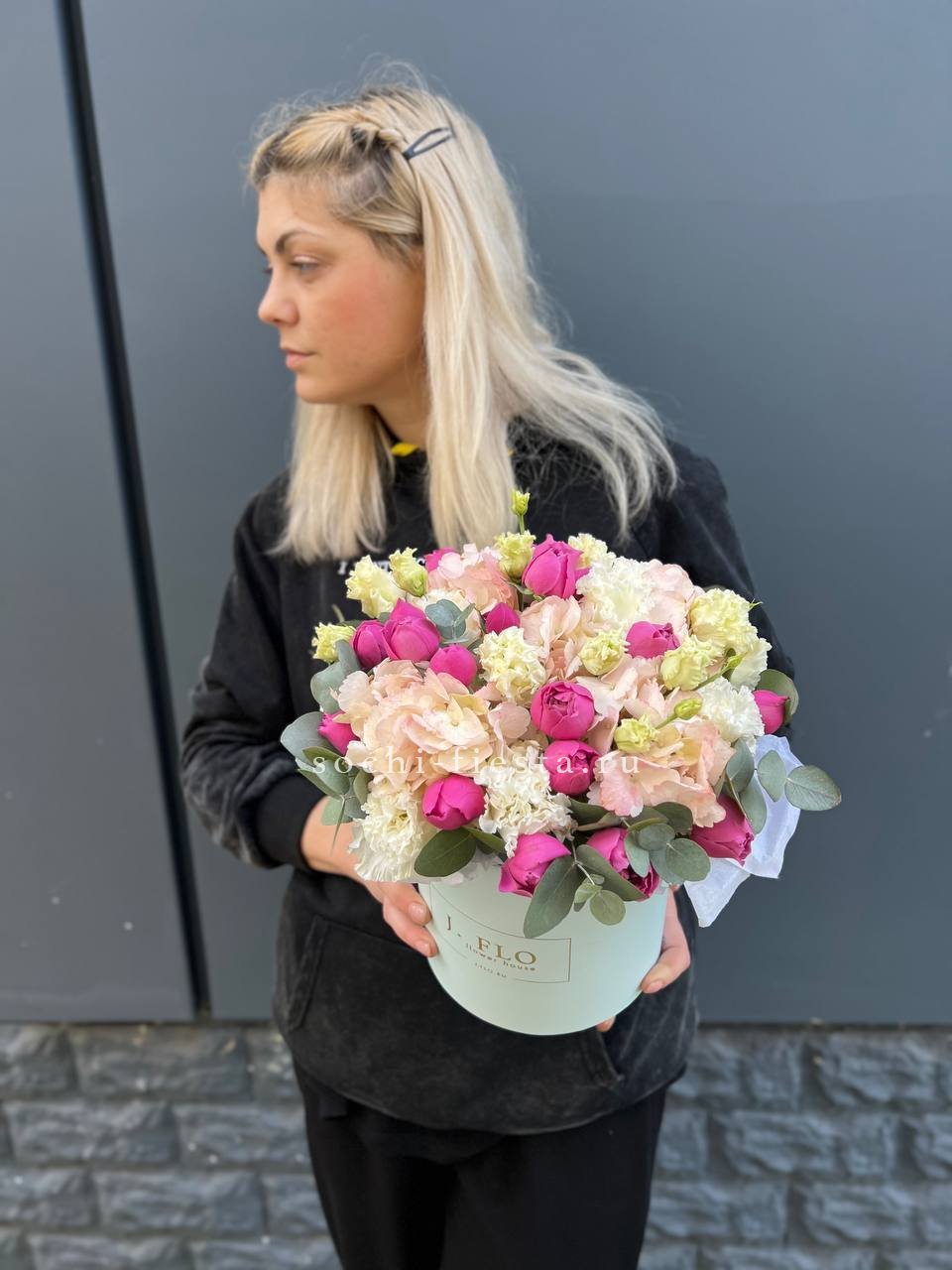Состав: гортензия, пионовидные розы, эустома, эвкалипт, бокс 16