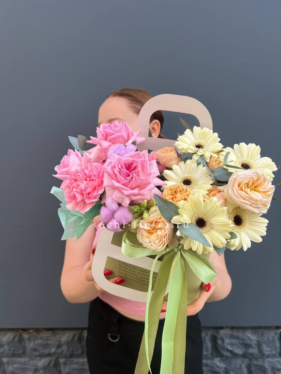 Состав: сумочка собранная в дуо цветовой гамме из нежных цветов