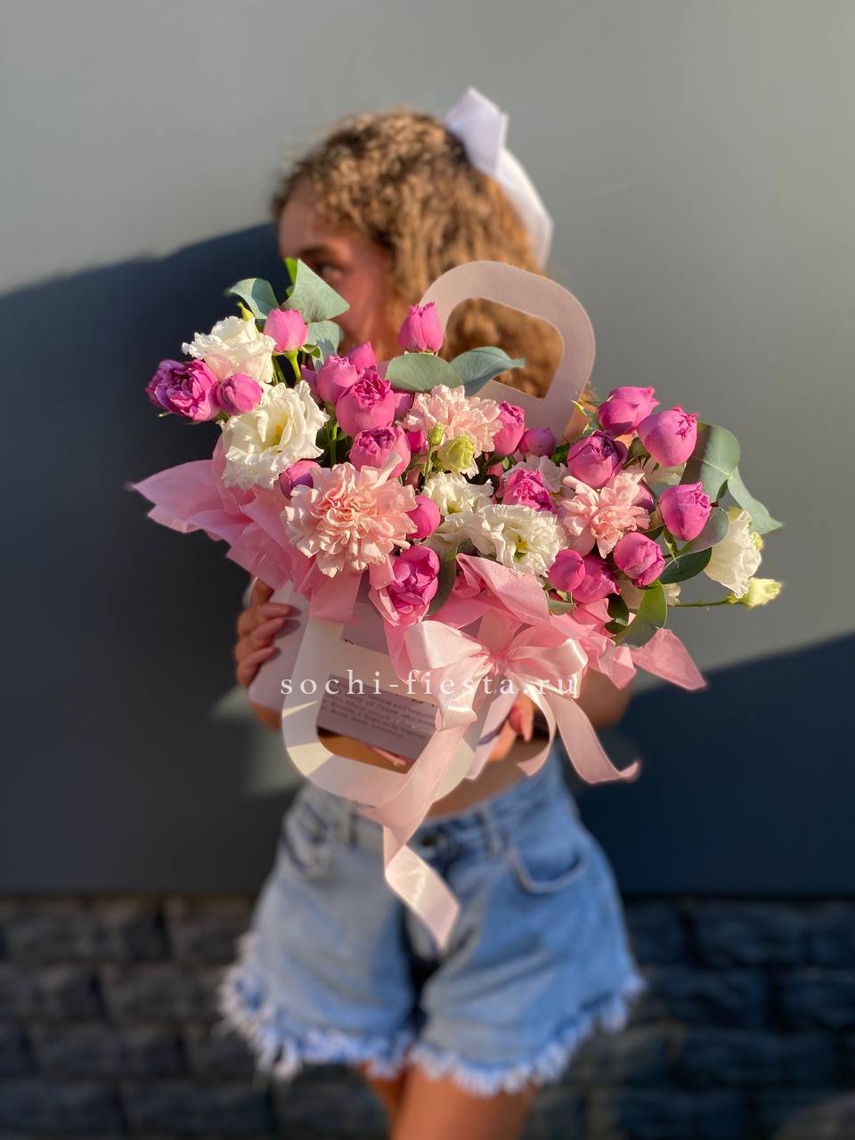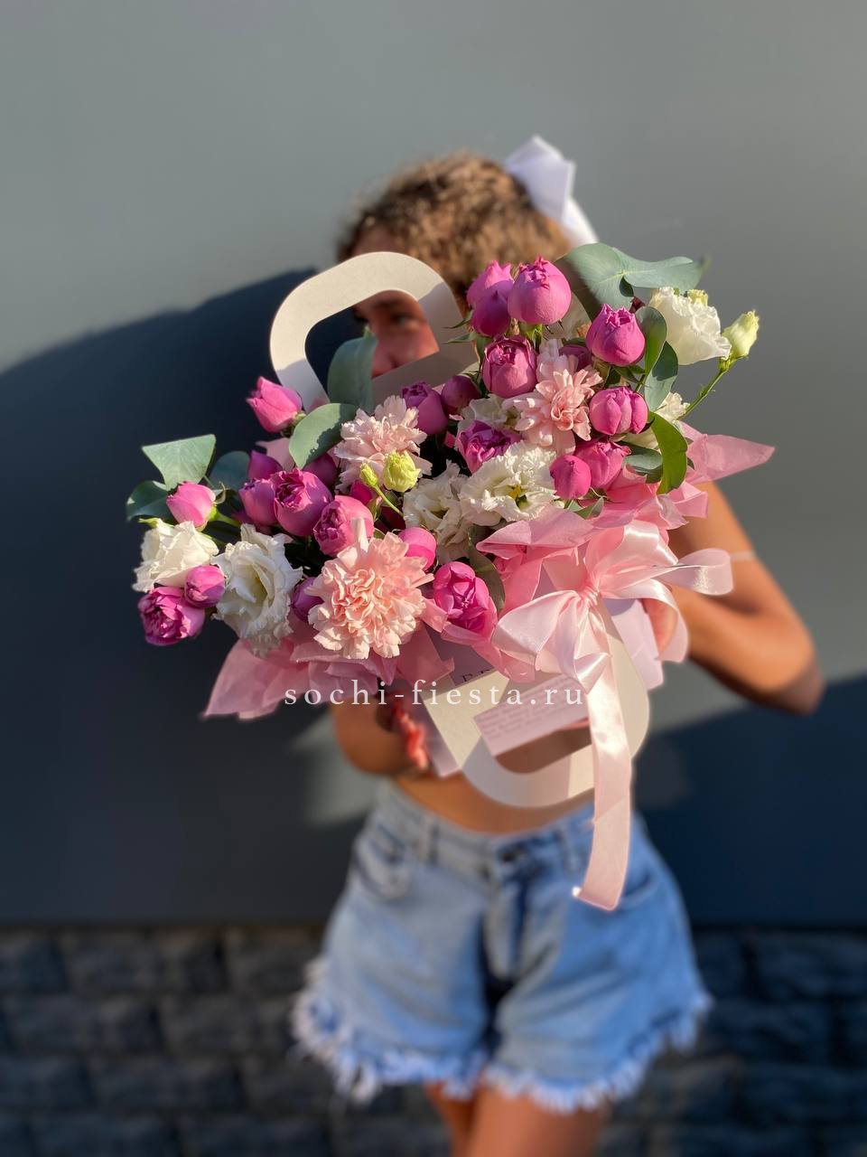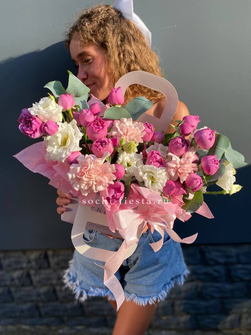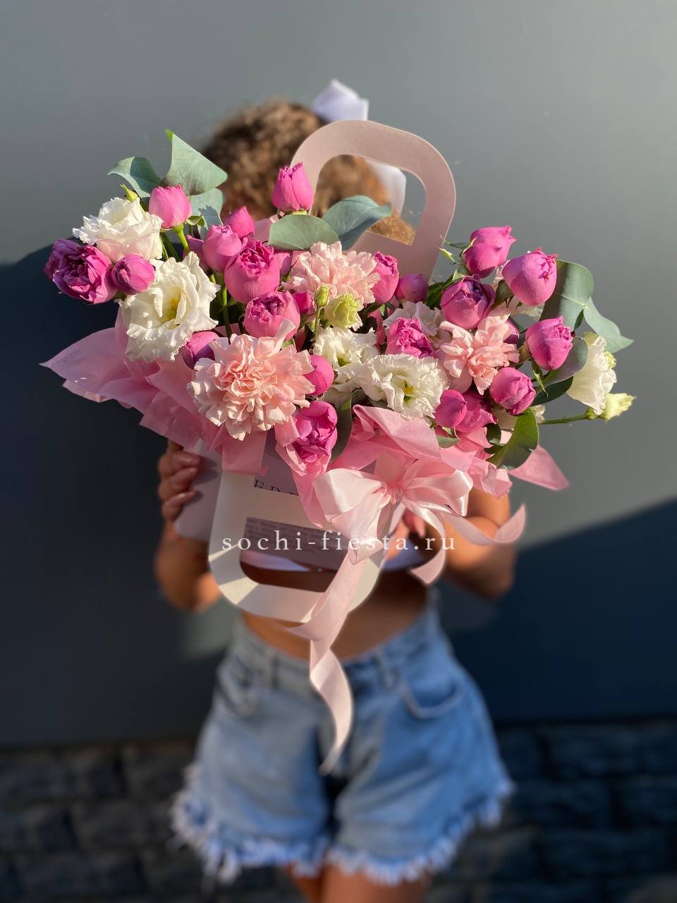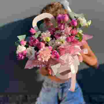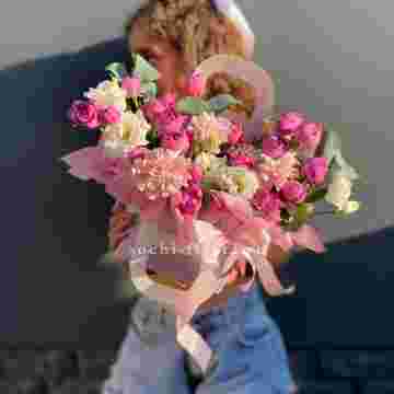 Состав: мисти баблс, диантус, эустома, сумочка