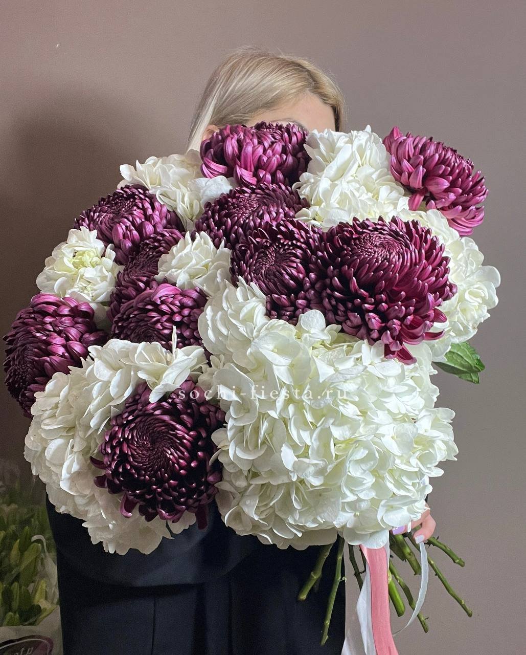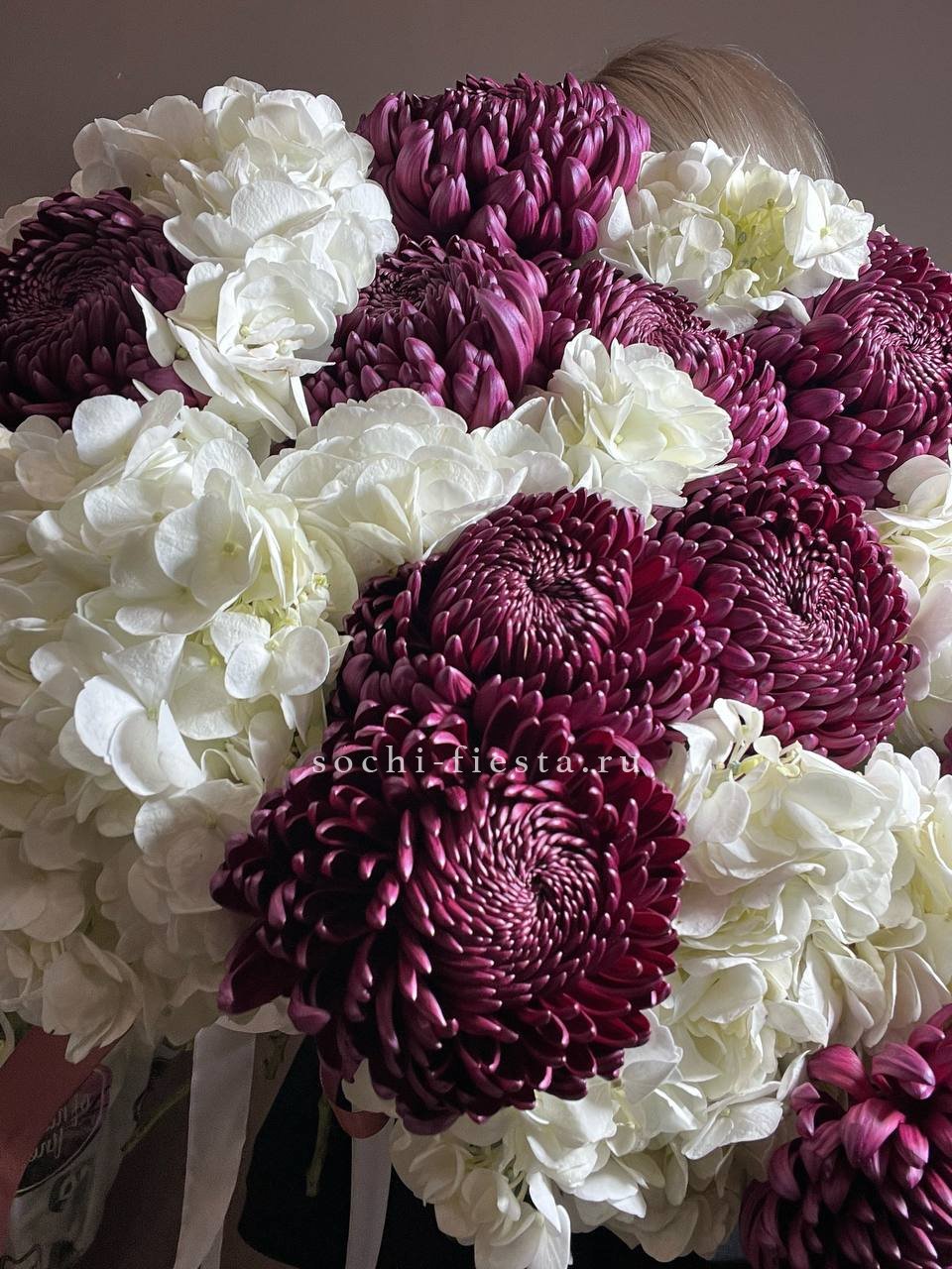 Состав: хризантема бигуди с золотым эвкалиптом в оформлении.