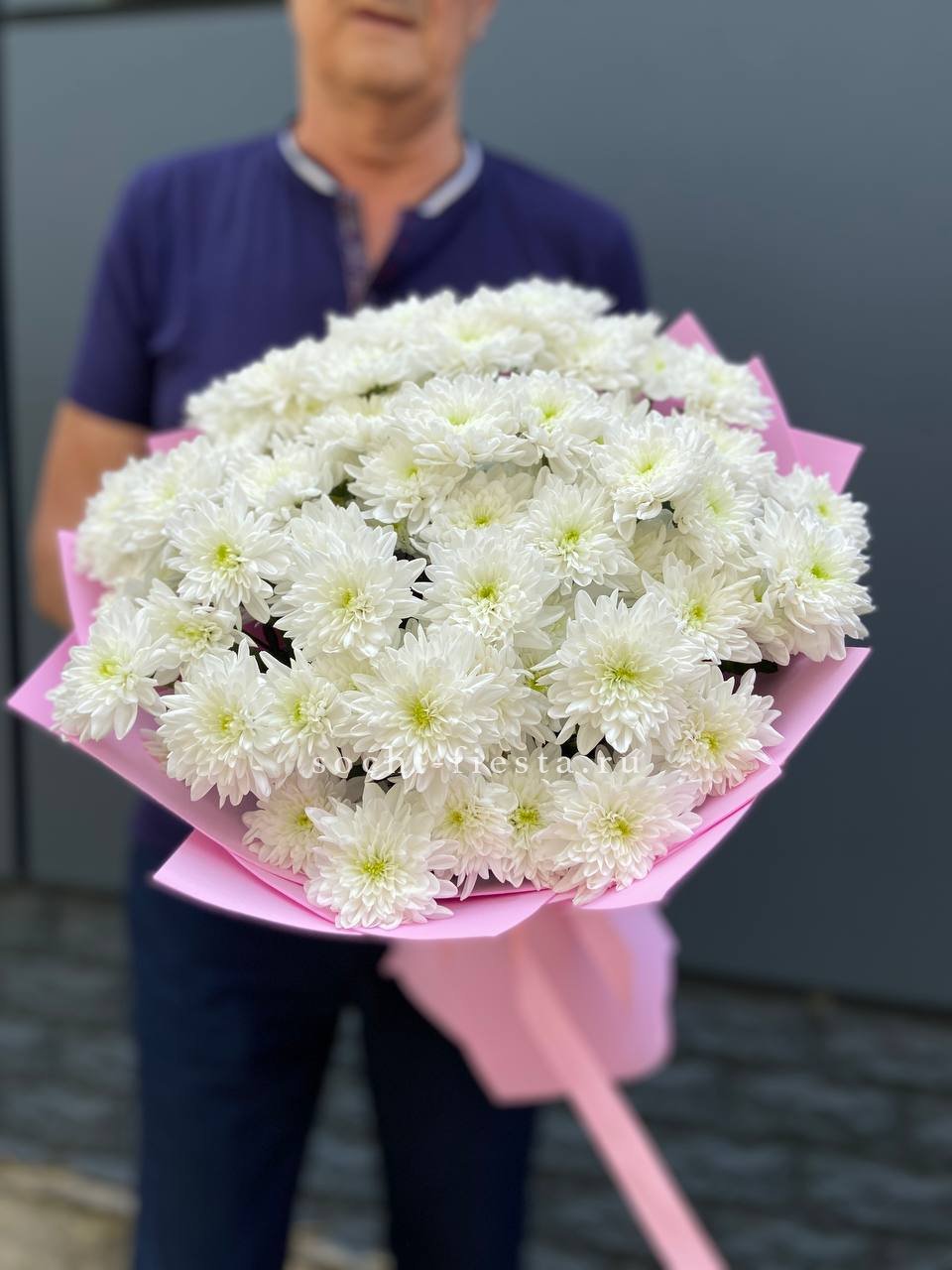 Состав: хризантема кустовая - 15 шт., , пленка,  лента