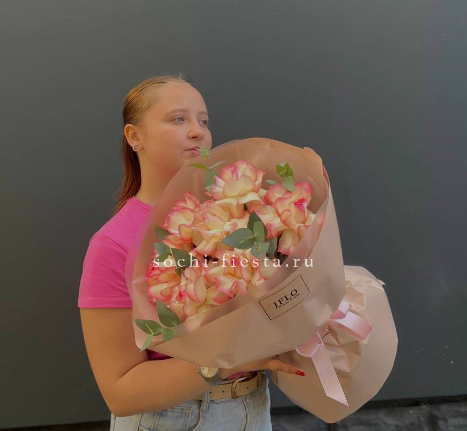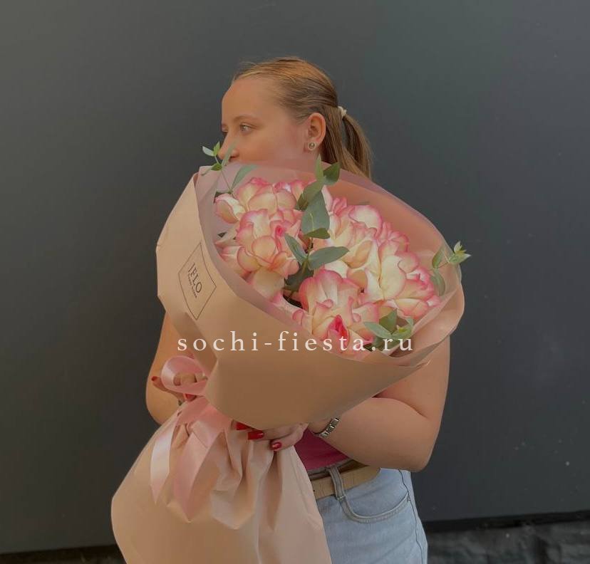Состав букета на фотографии: вывернутые розы -7 шт., эвкалипт-1шт., лента, авторская упаковка